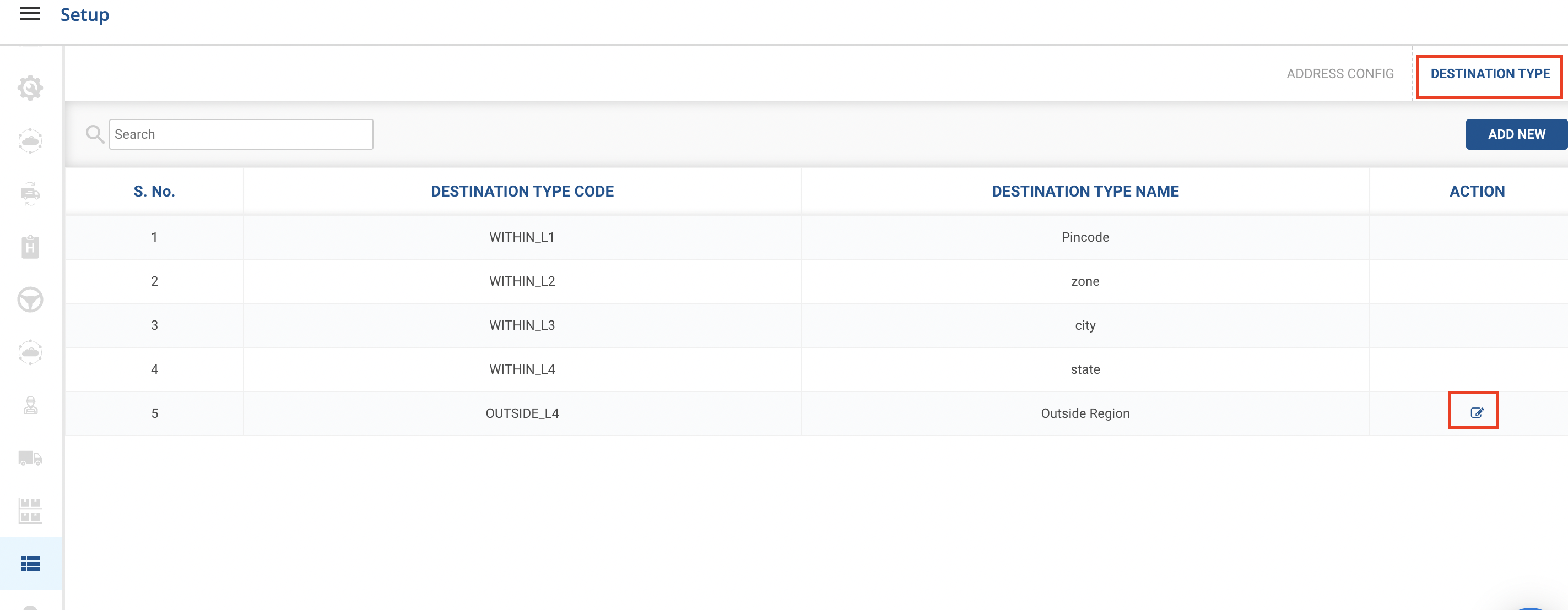 Go to Address Hierarchy → Destination Type → Go to Action → Click on Edit Button