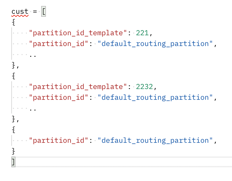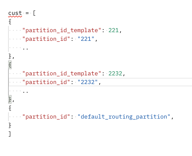 Use Partition Template: Boolean, allow automatic partition ID generation. Set partition_id_template for each customer, which gets stored as its partition ID. If use_partition_template is true, but template isn’t provided, then customer partition ID is chosen as default.