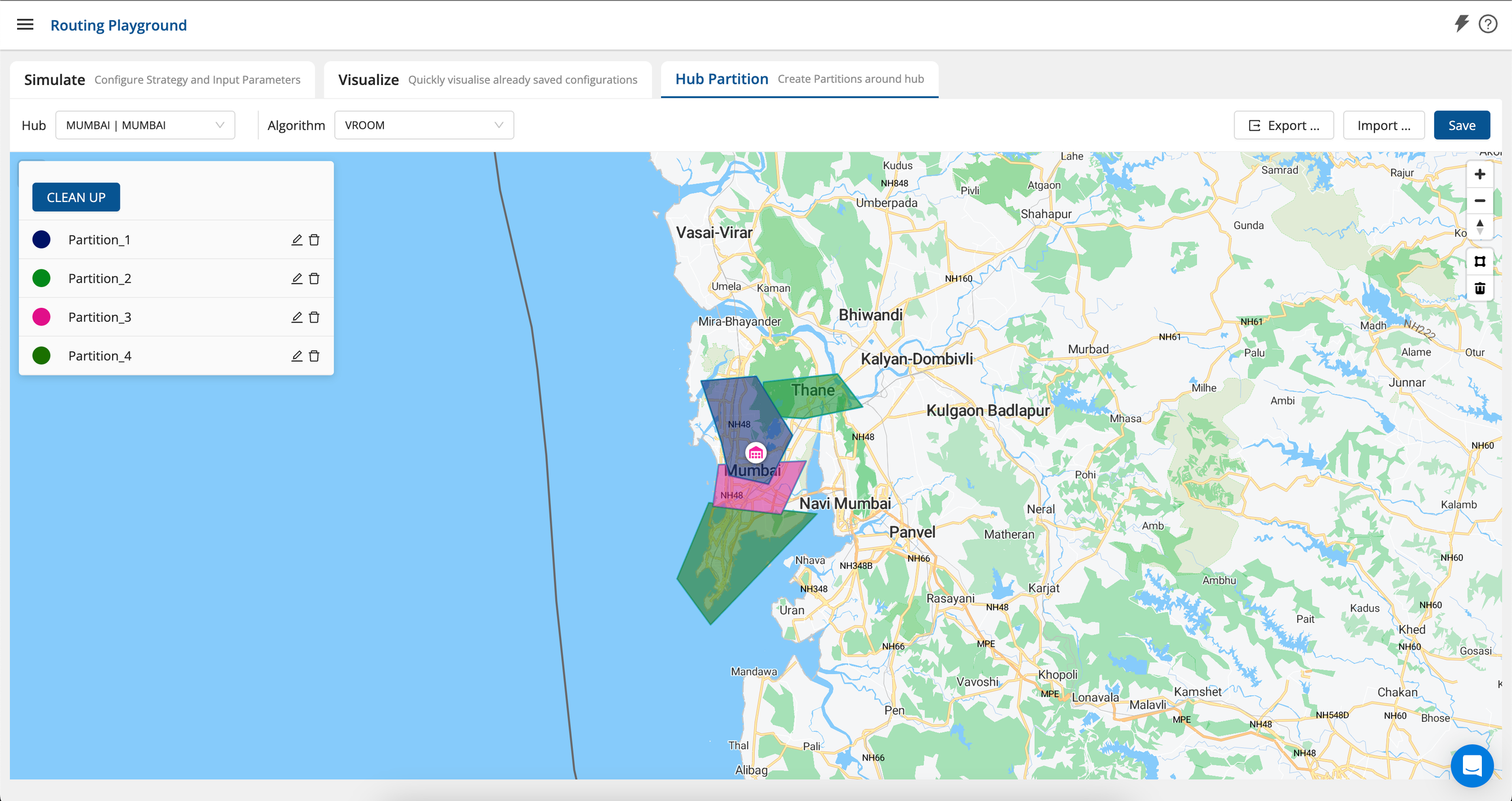 Lastly, the user can draw polygons manually to create partitions around hubs using the Hub Partition tab. To do so, the user needs to follow the below mentioned steps: