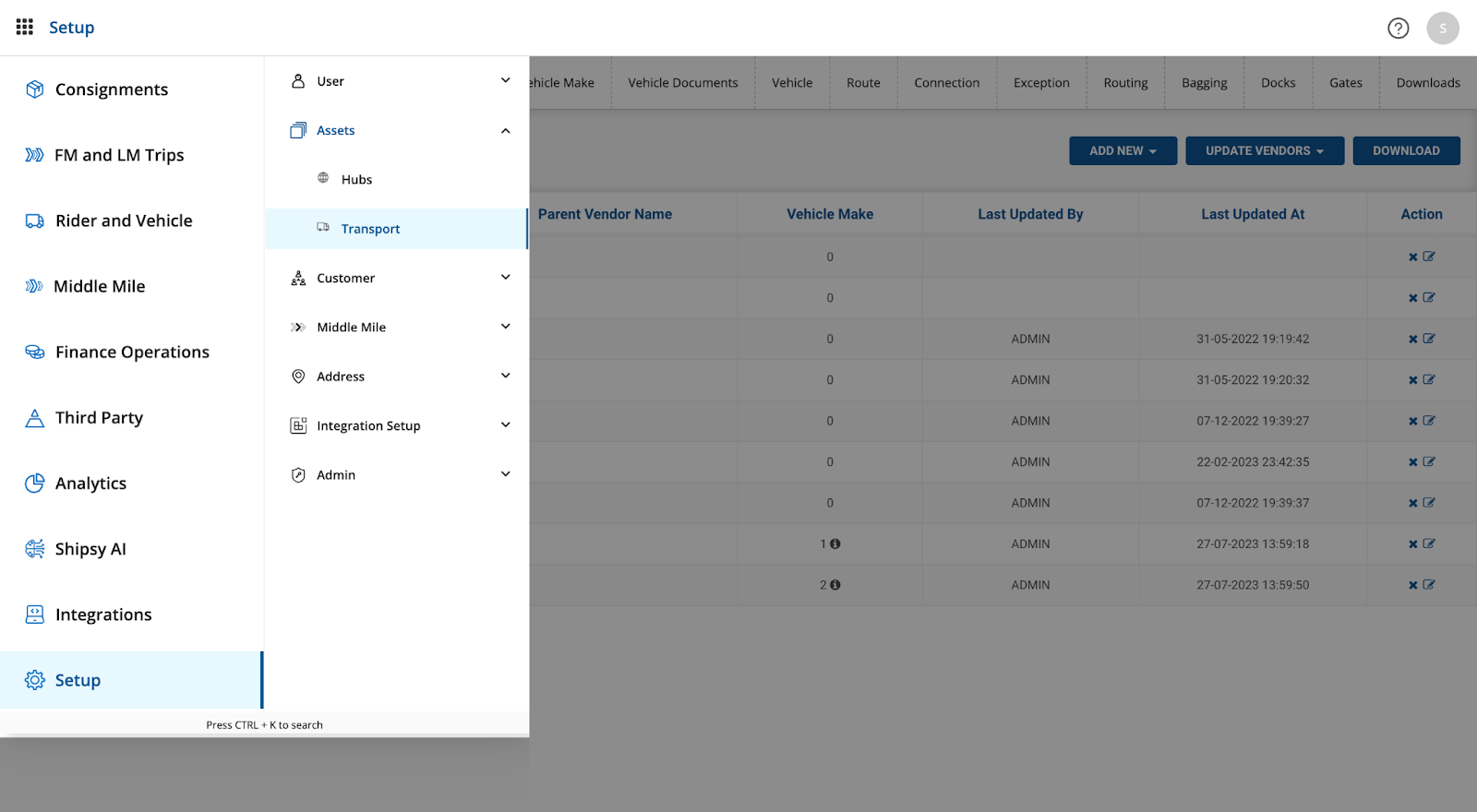 - Users can add new vendors to the Shipsy system by clicking on the add new button