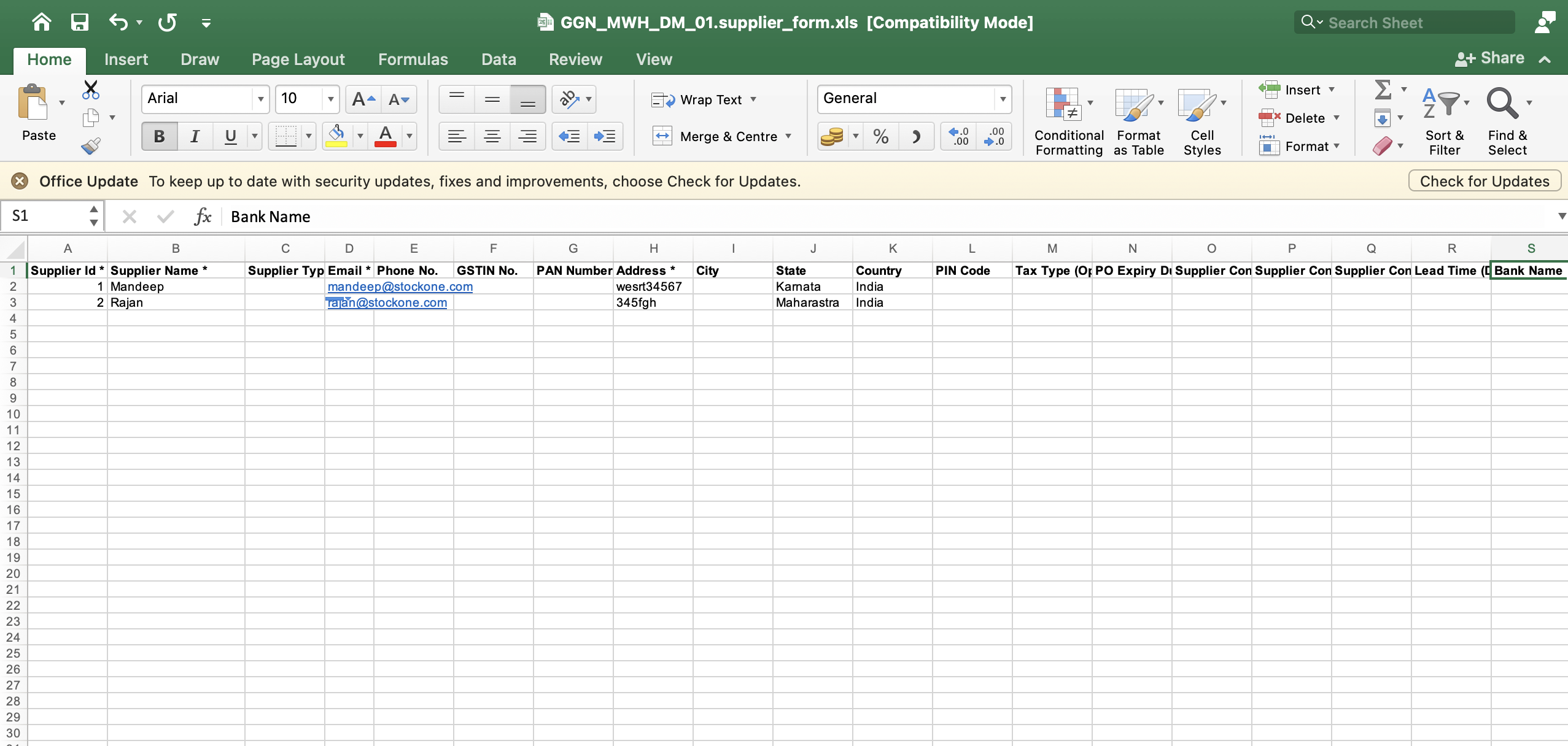 2.Supplier creation through uploads: